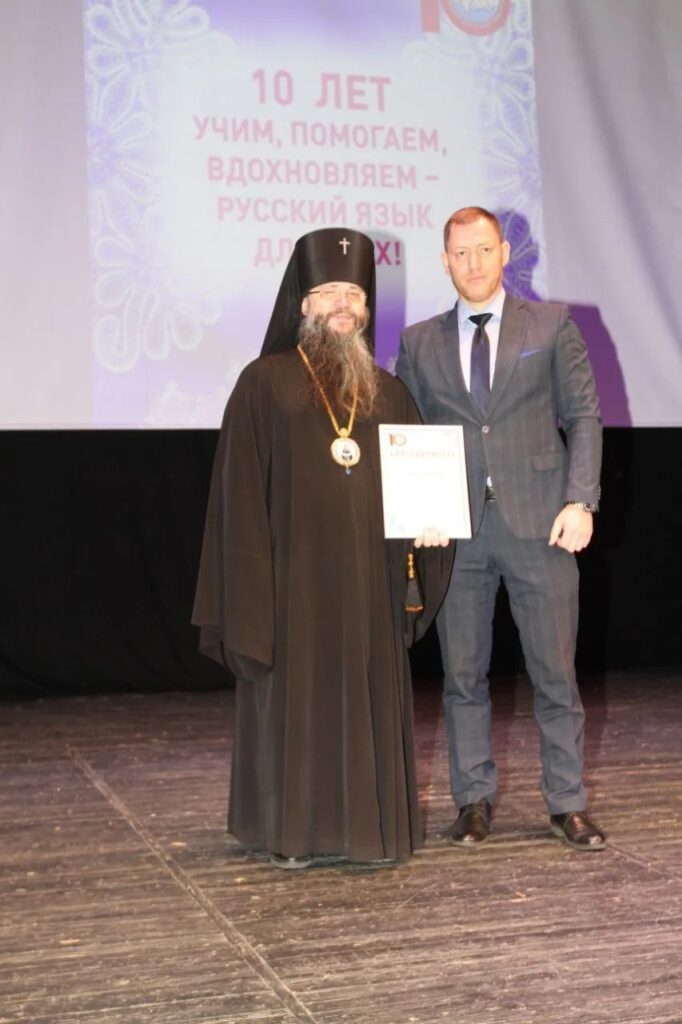 Поздравить юбиляров пришли и представители религиозных организаций. Так, архиепископ Махачкалинский и Дербентский владыка Варлаам вручил Архиерейскую грамоту одной из тех самых «русских учительниц», которая много лет назад приехала в наш край обучать русскому языку наших земляков, заслуженному учителю РД Зинаиде Шихшинатовой, которая вот уже многие годы ведет тесное и плодотворное сотрудничество с Центром, направленное на патриотическое воспитание молодежи.